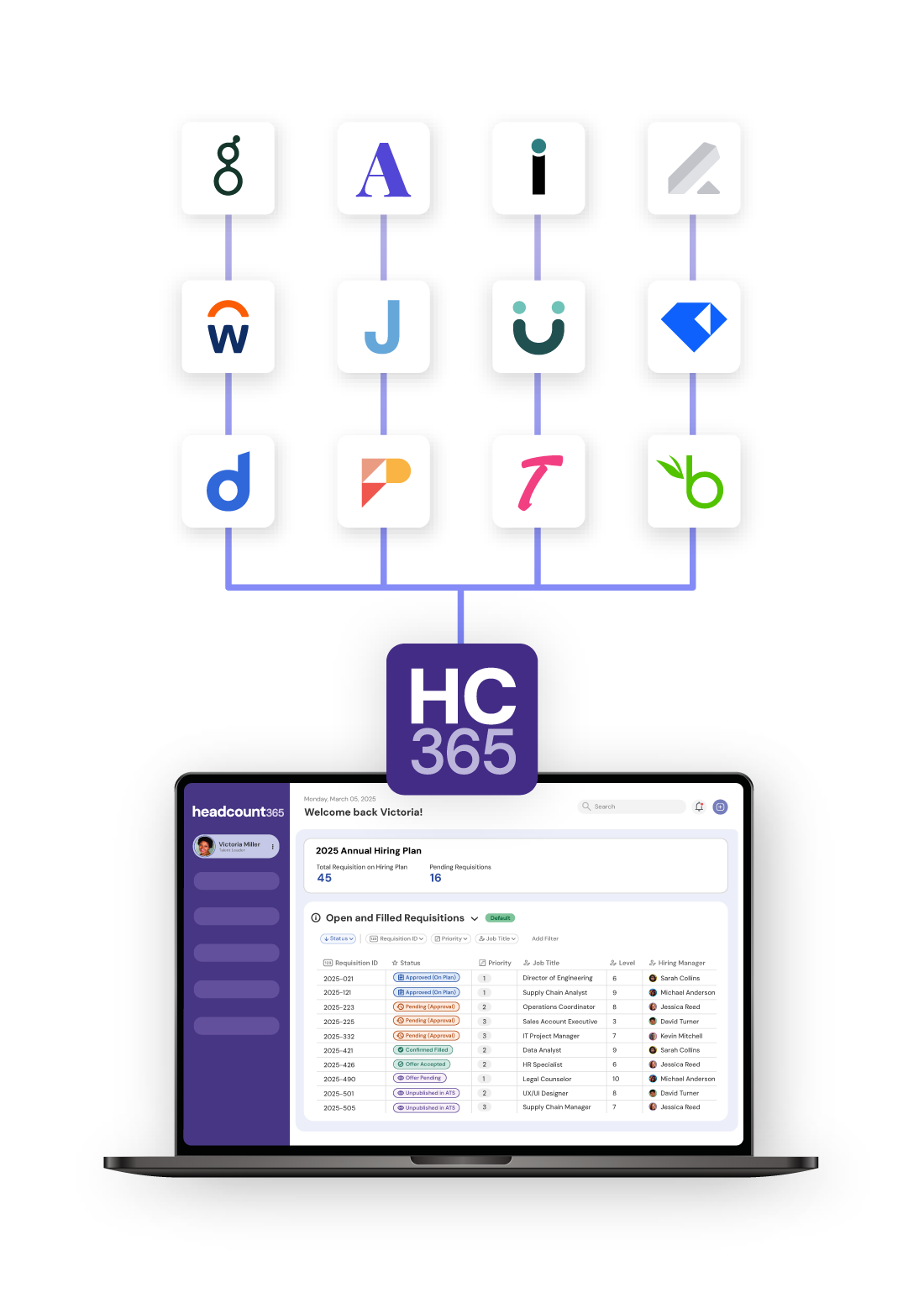 Headcount365 connects any headcount plan to the ATS in less than an hour. Configured via API, we map your hiring plan to your ATS configuration so data can be pushed & synced automatically.