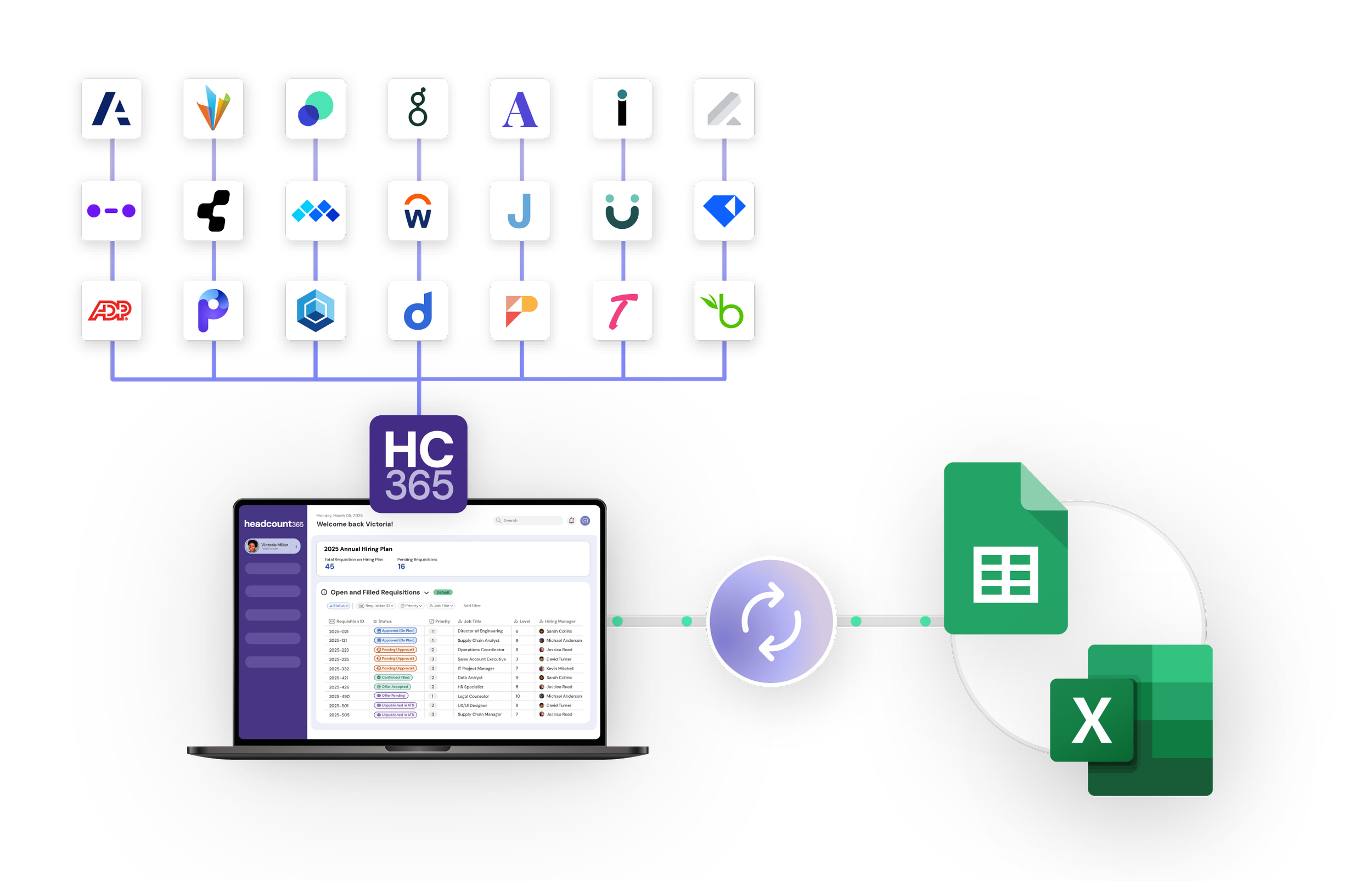 Still need data in a spreadsheet? headcount365 can instantly sync data from our system to any spreadsheet without any manual data entry.